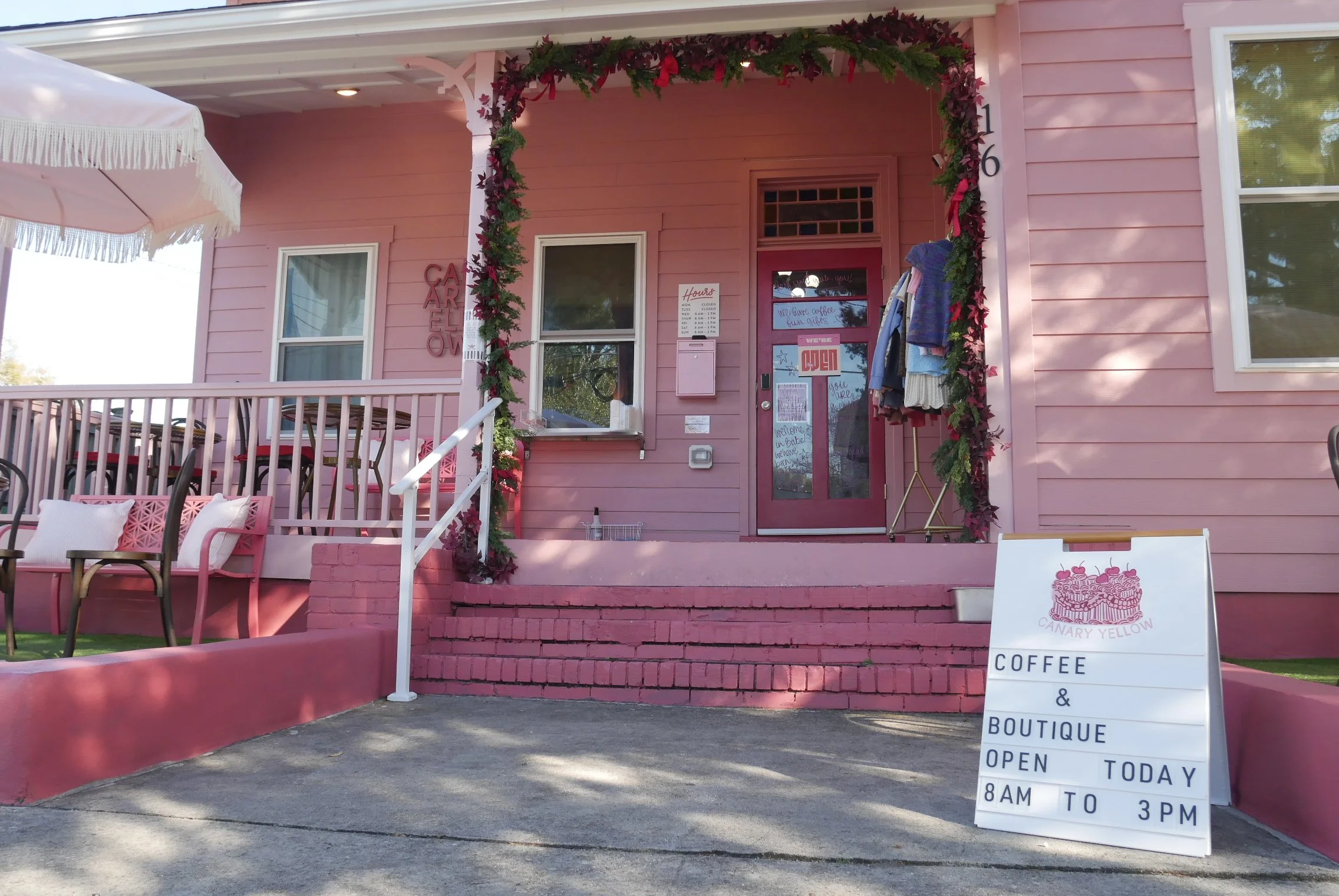 The pink facade of Canary Yellow.