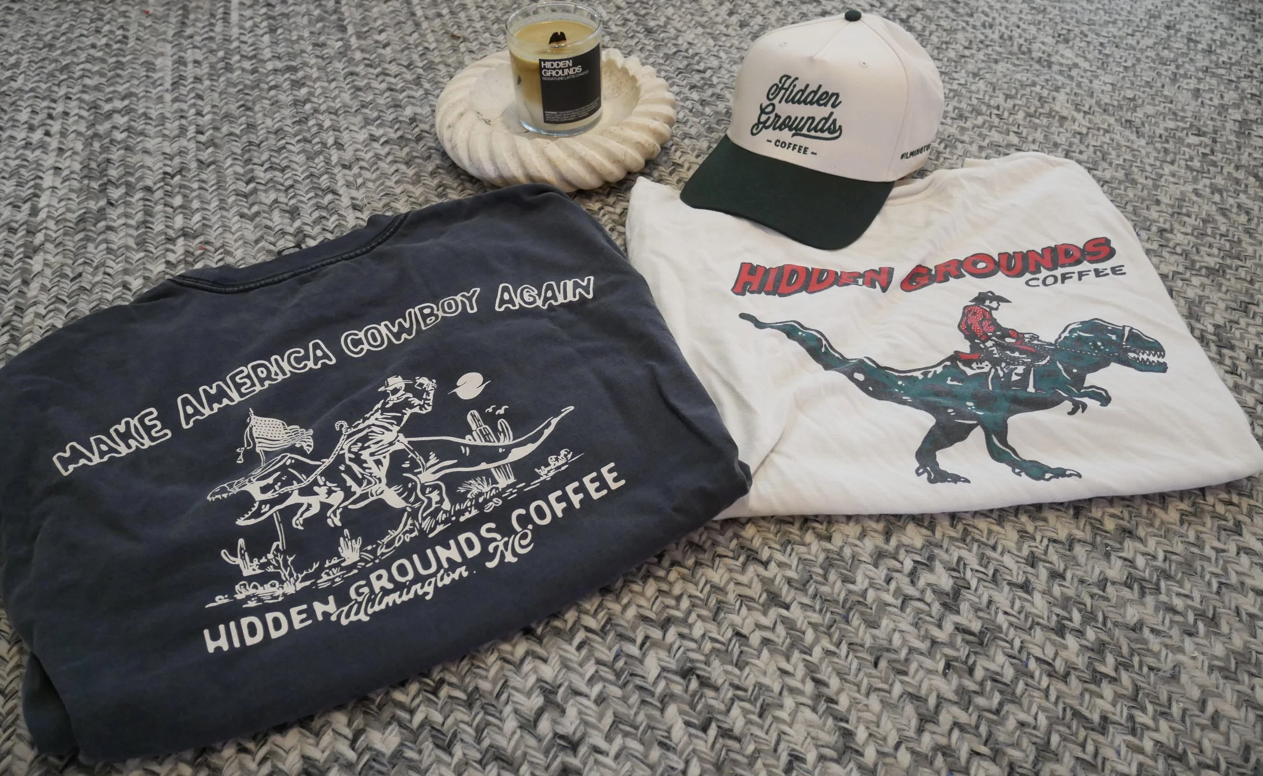 The iconic logo and branding has become a symbol of Wilmington to some extent. Many residents can be seen donning the “Dino Cowboy” logo in and around the Port City, and Tay notes those visiting typically take something home as a souvenir. It’s not uncommon to see Hidden Grounds merchandise while traveling to other places across the country.
